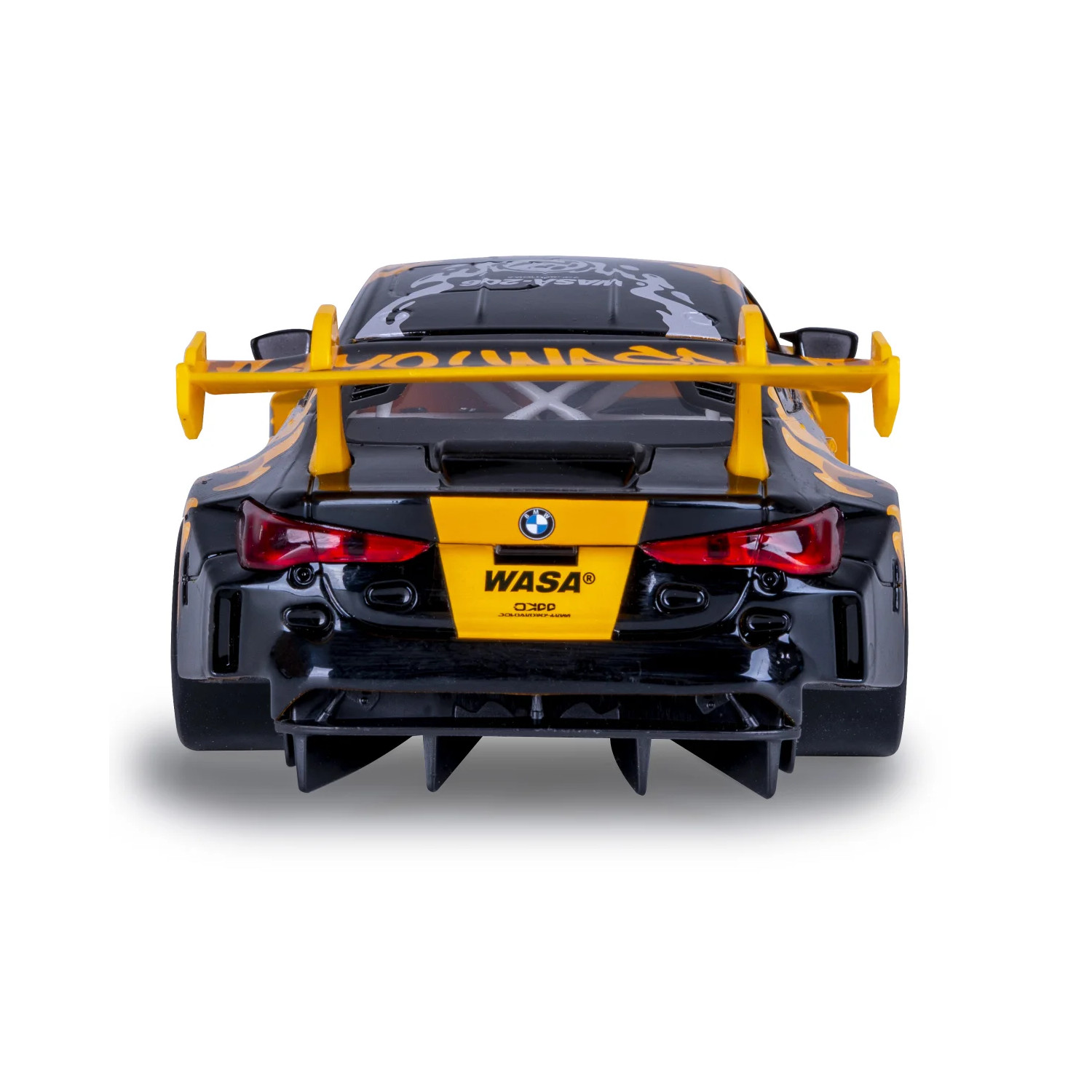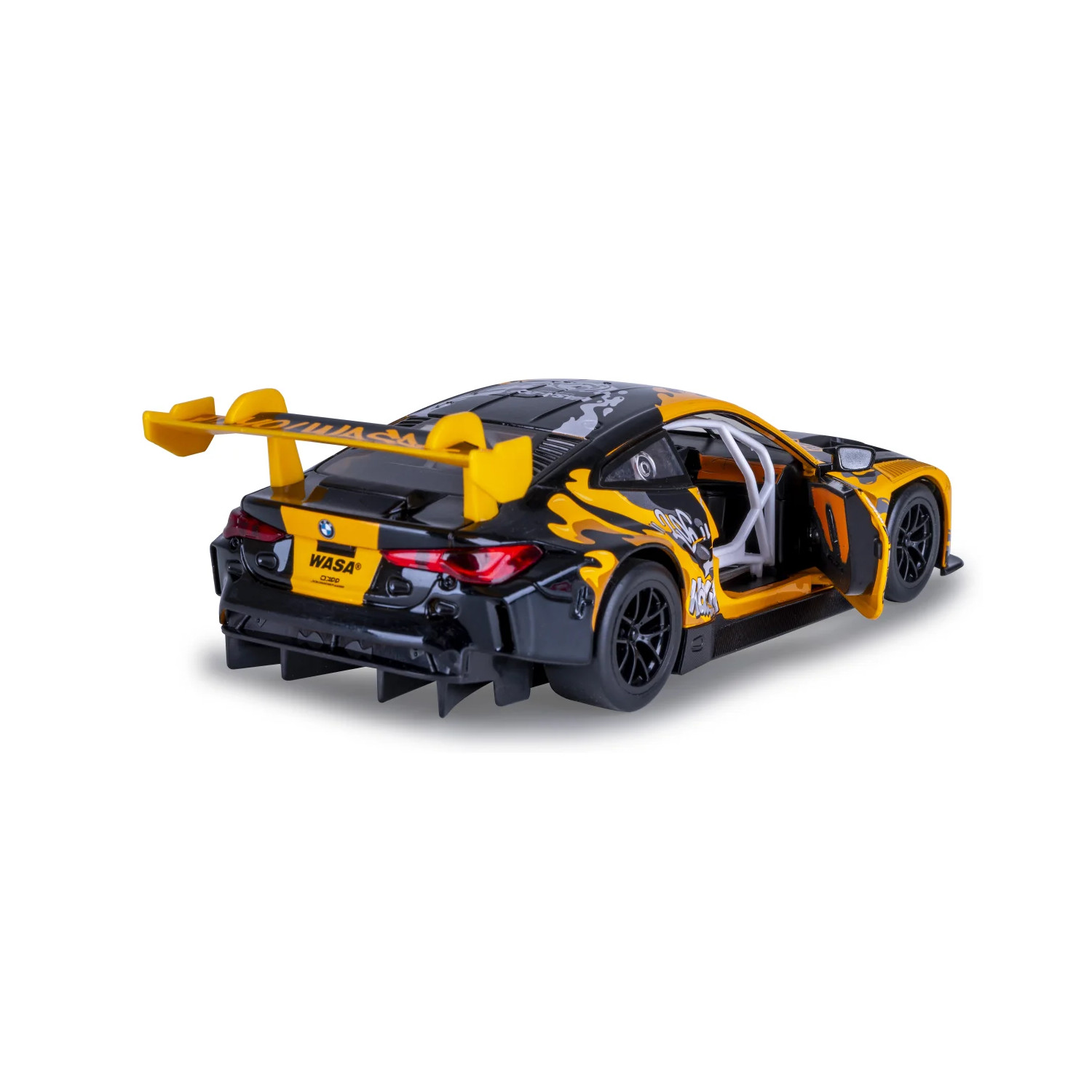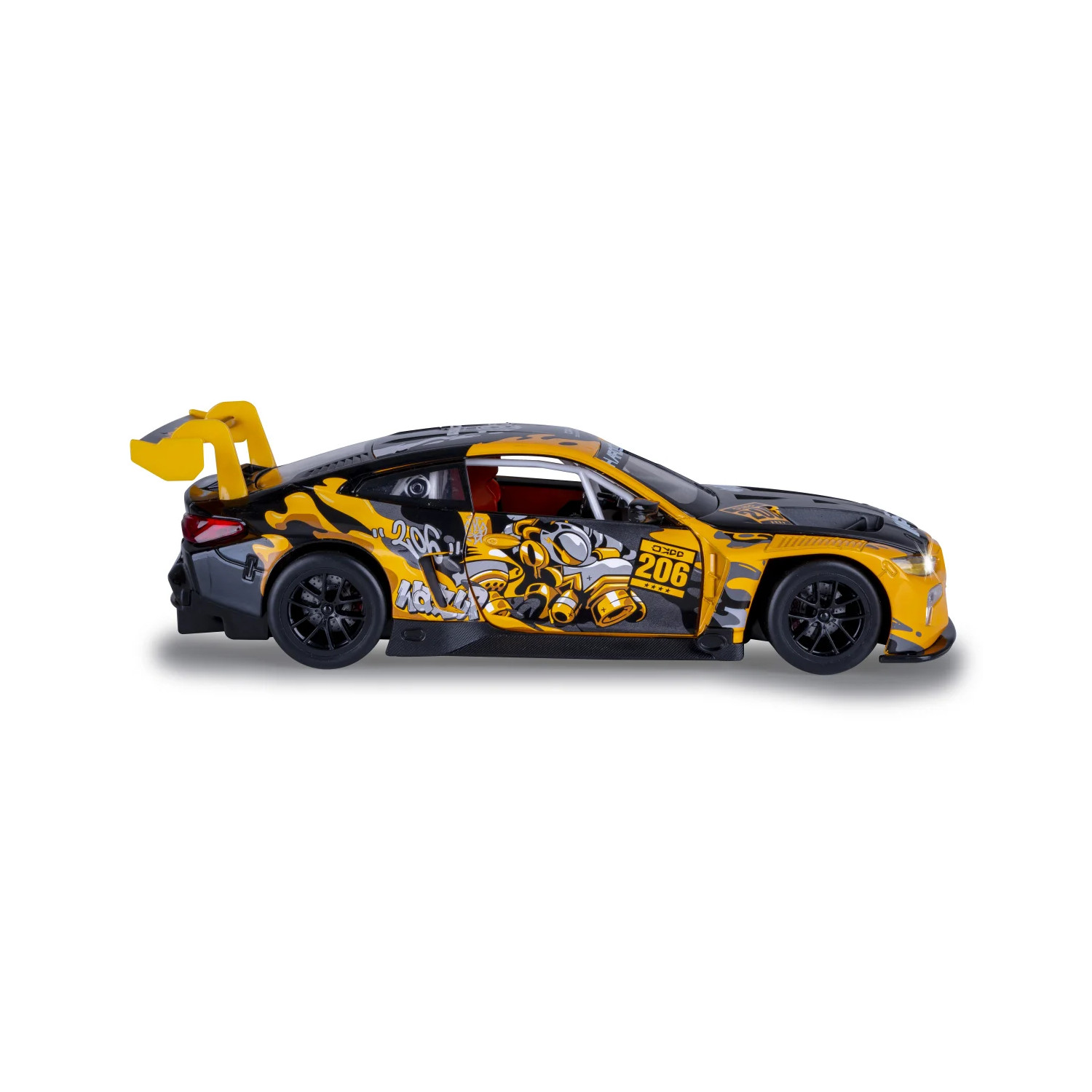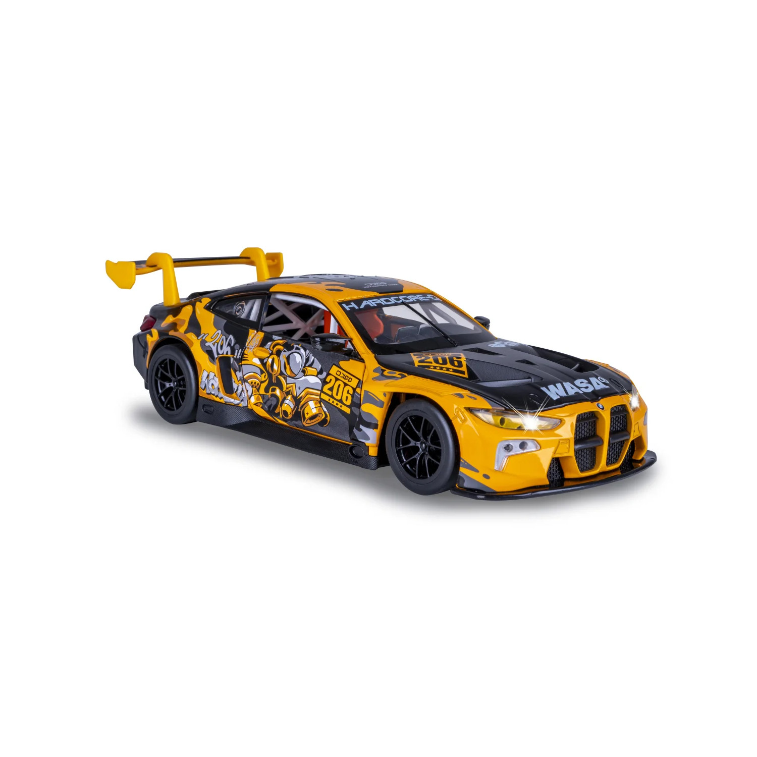 Entdecken Sie dieses detailgetreue Modell im hochwertigen Metall-DIECAST-Maßstab 1:24 – perfekt für jede Sammlung. Zahlreiche fein ausgearbeitete Elemente lassen die Herzen von Motorsportfans höherschlagen. Das offiziell lizenzierte Design und der originalgetreu nachgebildete Innenraum bringen die Faszination des echten Rennwagens eindrucksvoll zur Geltung. Im Cockpit findet eine Spielfigur Platz, während Gummireifen und eine klare Windschutzscheibe das realistische Erscheinungsbild unterstreichen. Dank integrierter LED-Beleuchtung sorgt der BMW M4 GT3 auch bei gedämpftem Licht für strahlende Auftritte. Türen und Motorhaube lassen sich manuell öffnen, und beim Betätigen der Karosserie oder beim Öffnen der Türen ertönen authentische Soundeffekte. Der BMW M4 GT3 ist nicht nur ein Blickfang in jeder Vitrine, sondern auch ein Highlight für Sammler und Liebhaber deutscher Hochleistungsfahrzeuge.