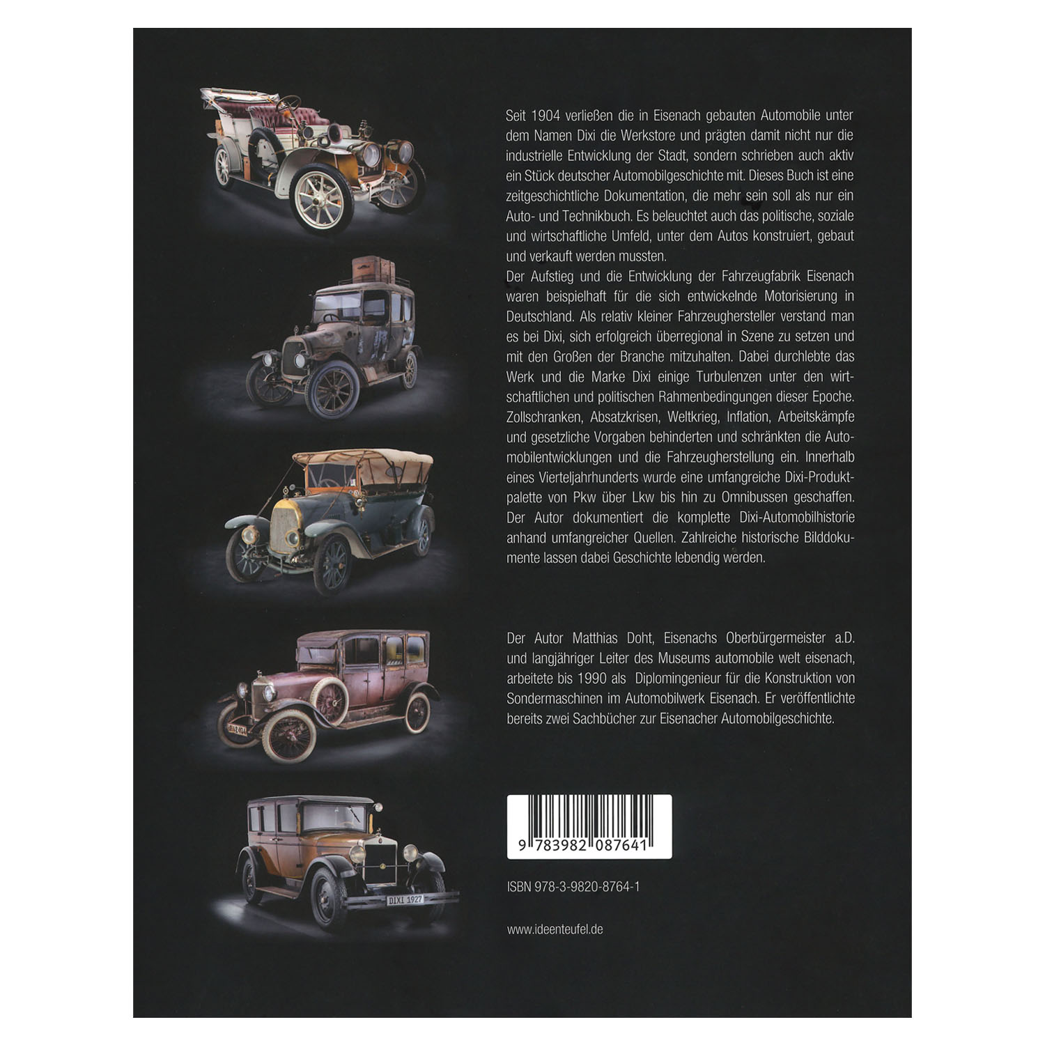 Der Autor Matthias Doht, Eisenachs Oberbürgermeister a.D. und langjähriger Leiter des Museums automobile welt eisenach, arbeitete bis 1990 als Diplomingenieur für die Konstruktion von Sondermaschinen im Automobilwerk Eisenach. Er veröffentlichte bereits zwei Sachbücher zur Eisenacher Automobilgeschichte.