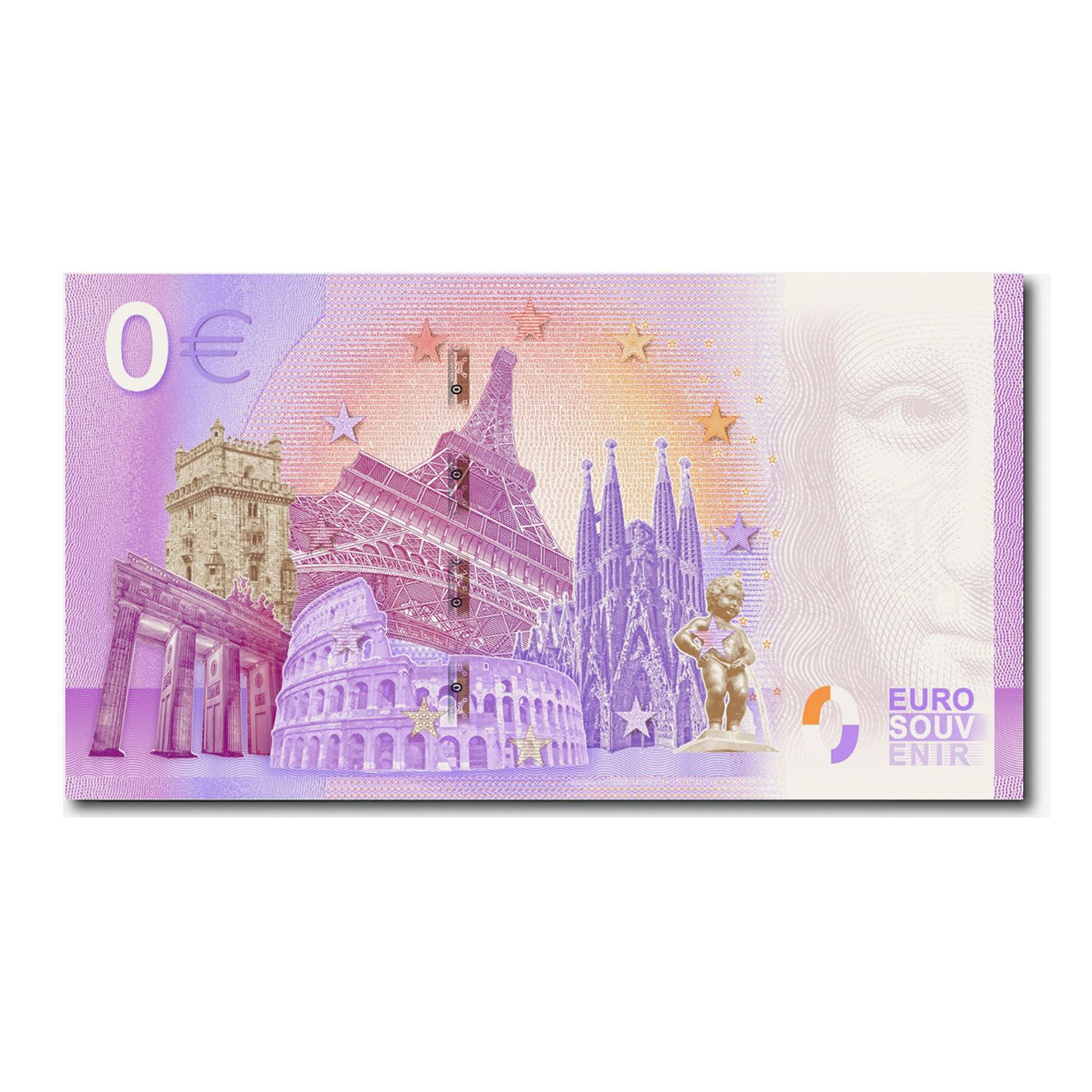 Die Rückseite zeigt berühmte europäische Wahrzeichen.