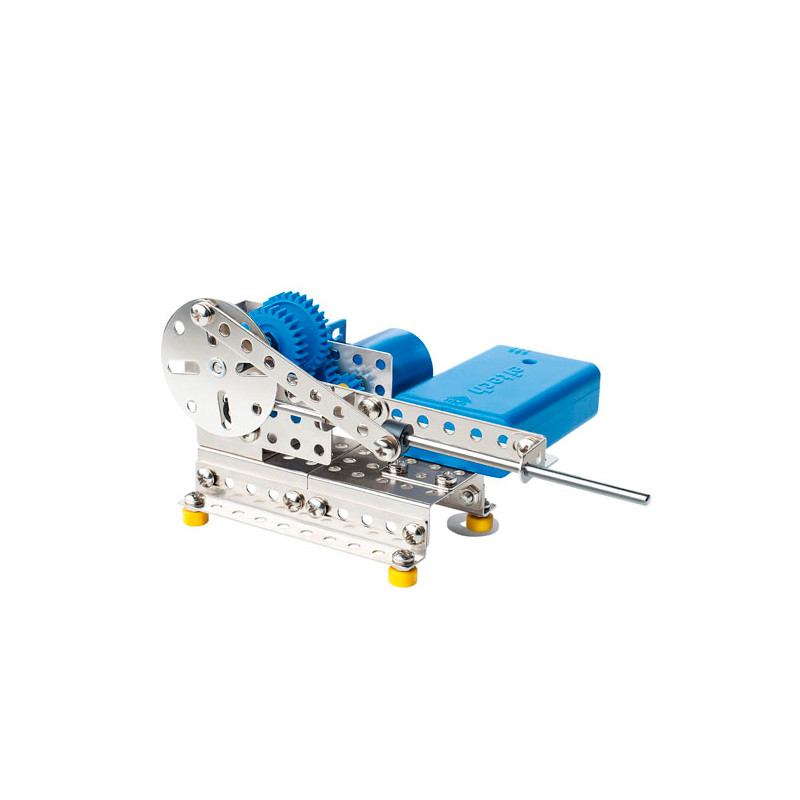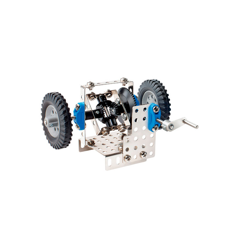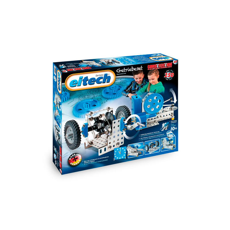 Der Metallbaukasten 00007 enthält alle Teile zum Bau von mindestens 6 Modellen. Es können verschiedene Getriebevarianten gebaut werden. Das Set beinhaltet über 250 Teile, inklusive eines schaltbaren